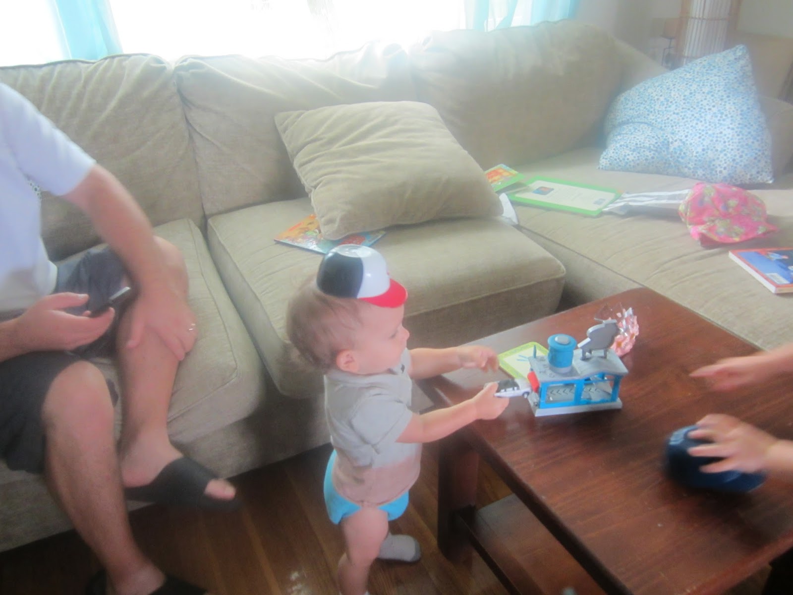 Here Ryne is driving the car again! After Grammy and Grampy went home Memere and Pepere came to visit us! They brought a new playground set for us!